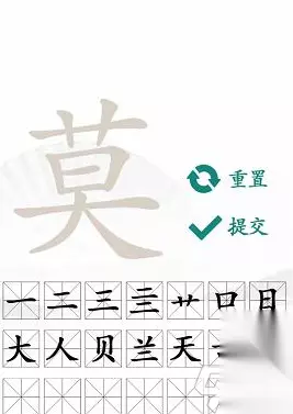 通关答案: 艹、古、日、大、旦、十、人、一、二、三、亖、丨、天、冂(jiōng)、匚(fāng)、凵(kǎn)、兰、亘、贝、口、莫、士 答案解析: 1、还是先从简单的开始找,艹、古、日、大、旦、十、人、一、二、三这些先写出来;