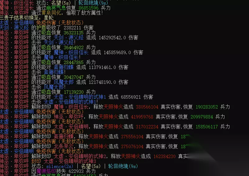 你魅哦,这天照神火也有点像封神阵了,各种击杀啊,期间恢复兵力的两倍,再加上之间每秒偷取的属性,这伤害也是扛扛的!