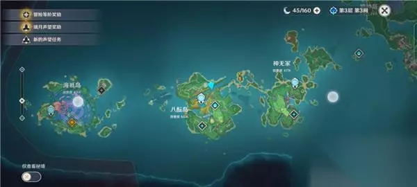 第三本里面告诉我们,接下来他会去八酝岛南方的沙洲试药,这次是全剂量。于是我们打开地图,找到八酝岛的最南方,也就是最下面这个锚点,进行传送。