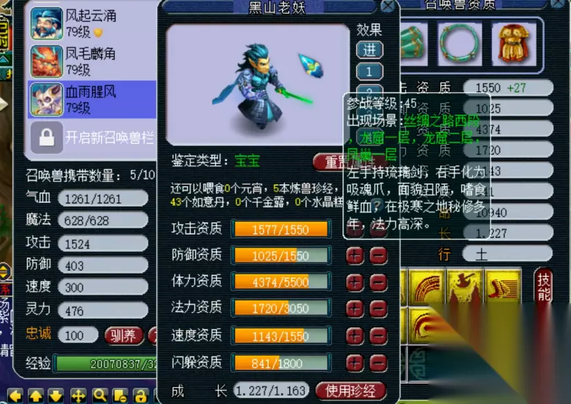 通过吸附石获取高价值点化石,关键在于选择合适的召唤兽。吸附石玩法虽然看运气,但选对宠物能显著提升成功率。目前主流吸附目标分为两类:一类是携带特殊技能的稀有宠,比如律法女娲(善恶有报)、人形犀牛将军(剑荡四方);另一类是自带高价值普通技能的宠,比如巡游天神(高必杀)、雾中仙(高神佑)、黑山老妖(高偷袭+高吸血)。这些宠物技能在点化石市场上需求量大,吸附成功就能赚一笔。