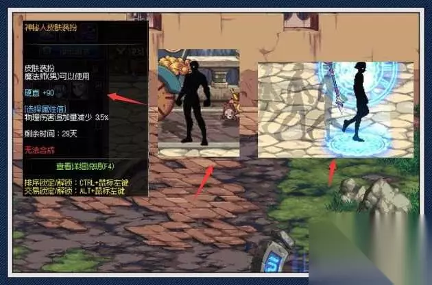 神秘人皮肤装扮,并没有属性,但玩家可发现,商店可以兑换皮肤幻化扩展券!这装扮外观,则比较另类,全身一身漆黑,走路还有幻影,颇为的帅气!而且,跟别的皮肤装扮不一样,他会覆盖整个角色。也就是说,你穿任何时装,在佩戴神秘人皮肤装扮后,就会成黑色,被完全的覆盖!当一个全身黑色的角色,从你身边走过时,你都会惊讶,也太过奇葩!不愧是神秘人皮肤,让你一眼不能辨认角色时装,用黑色来进行掩盖。