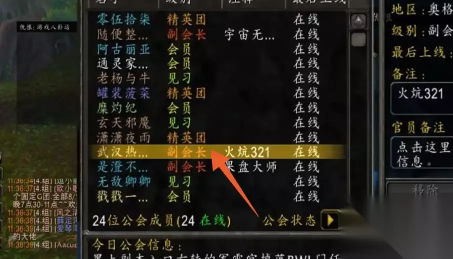 3、按下O键,弹出公会选项卡,找到自己名字,右键退出。