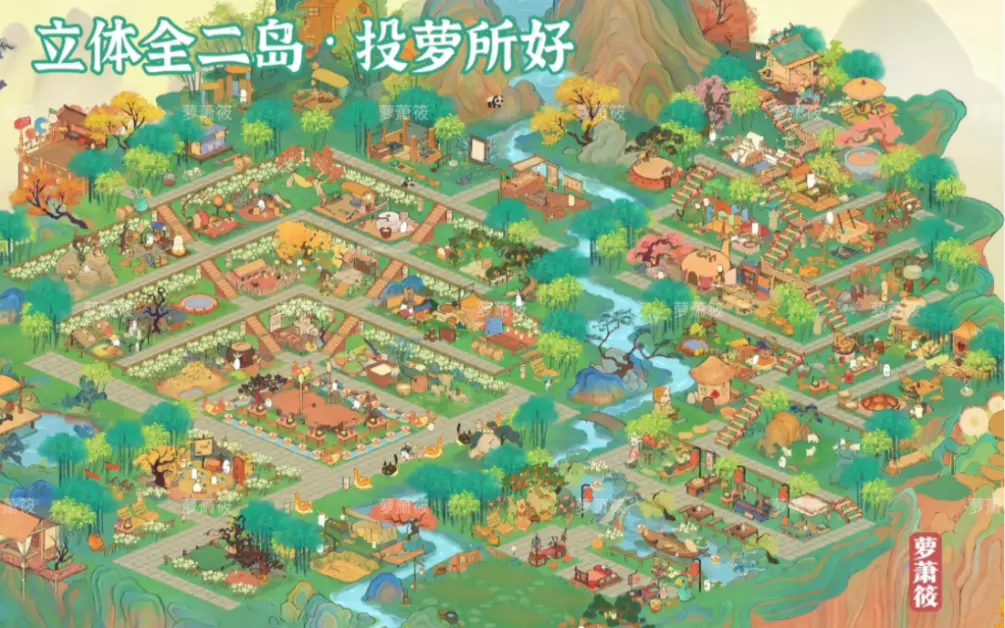 这是为桃源深处有人家新手打造的二岛全生产加农田布局,布局兼顾生产区域与农田区域,规划合理,画风清新治愈,很适合新手参考使用。