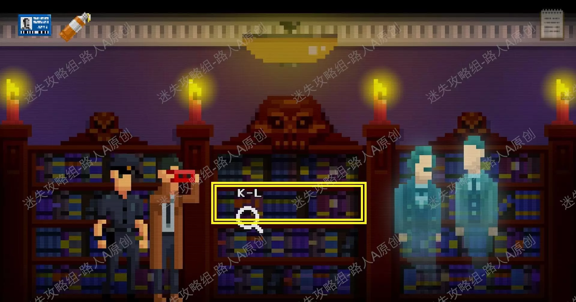 12.乘搭电梯上4楼,前往【恐怖书籍区】,和两个幽灵对话,调查书架【K - L区】。12.1