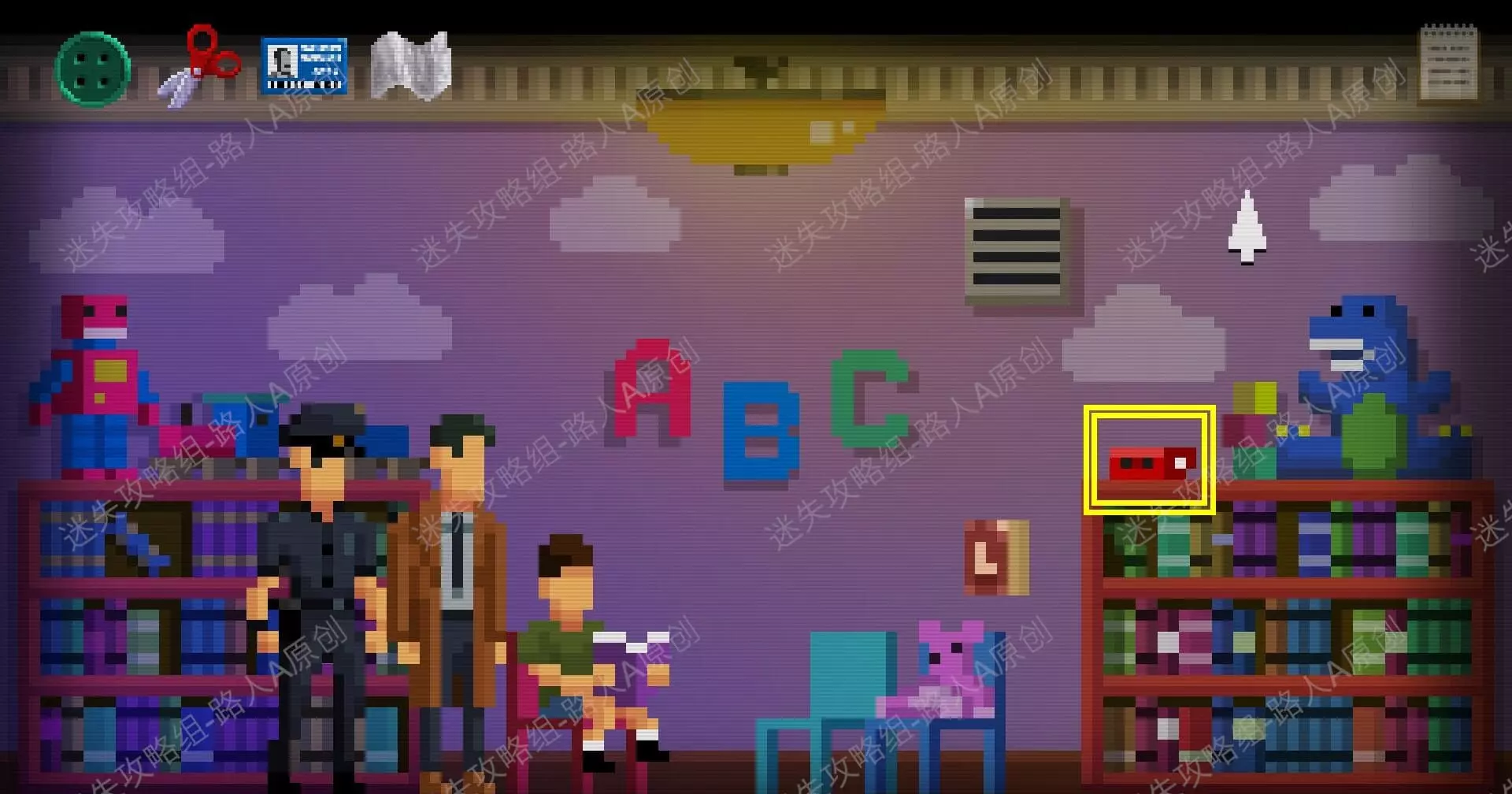 4.前往右边的【儿童区】,拾取书架上的【三维魔景机】。4.1