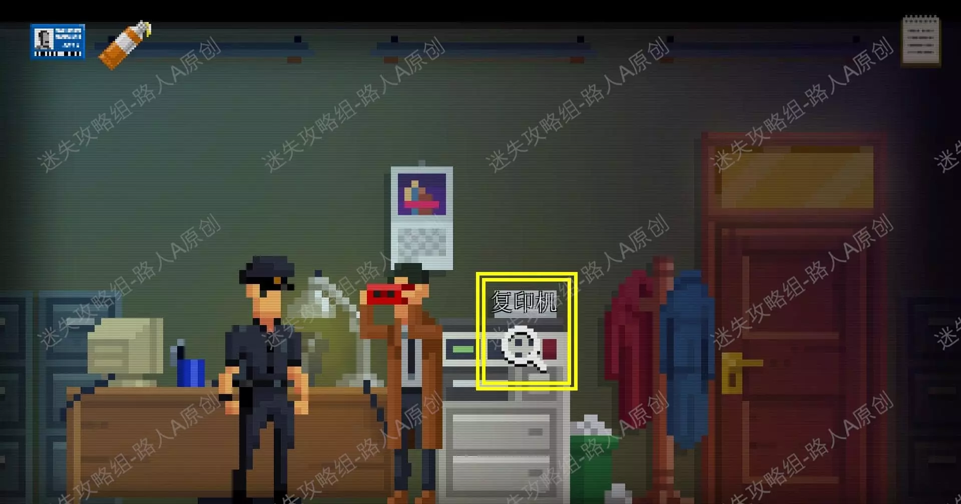 14.乘搭电梯到1楼,进入办公室,调查复印机,获得【照片】。14.1
