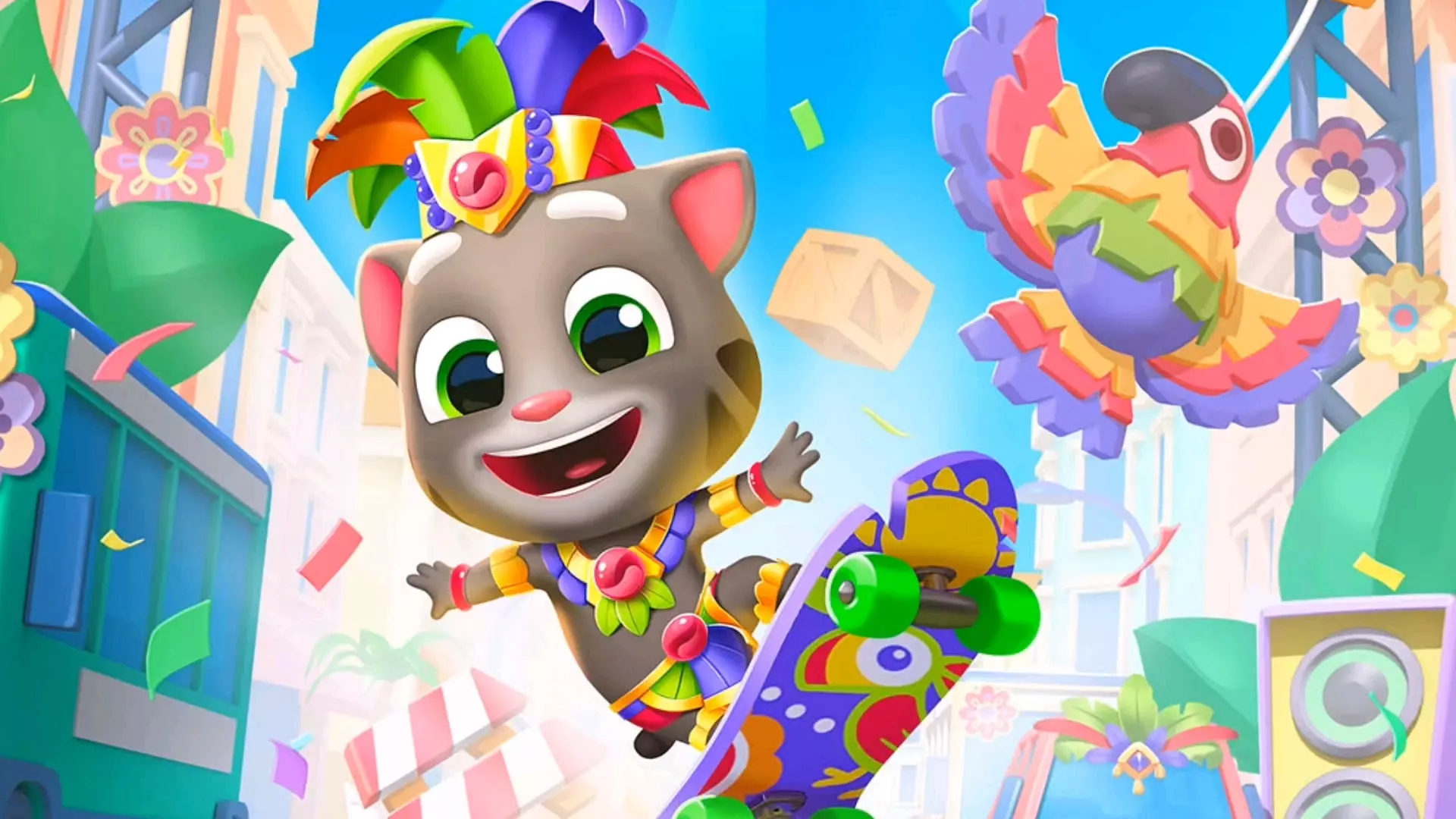 这是跑酷游戏《汤姆猫跑酷》的印度狂欢节主题内容,画面里汤姆猫等经典角色在充满烟火的场景中开启跑酷,氛围欢乐热闹,展现了该主题下的特色跑酷玩法。