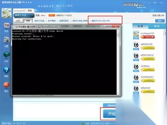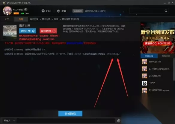 别人加主机,平台载入游戏,开始游戏。里面输入建主机的人的房间虚拟IP。 平台的虚拟IP都是192.168.2.XXX格式。