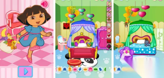 小保姆真真长大,并成为懂事的孩子,化身成为小保姆,照顾小婴儿或者帮助妈妈打扫家务。不过也有特别厌烦或者无聊的时候,此时朵拉就会将婴儿房间变身成为游乐场,在这里睡懒觉、吃饼干,甚至也会玩积木、滑滑梯,玩的不亦乐乎。这样的特色小游戏有精美的画风,将朵拉与妈妈等形象,都展现的非常精致。 手机扫码下载233乐园APP预约 预约订阅最新动态 优先233乐园APP下载 2、《朵拉公主的卧室》