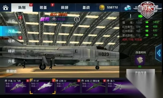 【战机改造】 战机达到15后即可以进行改造。改造也是培养战机的一个重要方法!在改造中,我们消耗不定量的改造图纸可以不断加强战机的各种属性!虽然每次加的都不是很大,但是每天都可以升级几下,但是长年累月的作用下,还是有很大作用的!改造图纸可在竞技场商店、军团商店、军火黑市中购入。