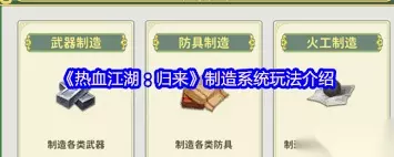 6. 制造系统的收益 - 制造出的高品质装备可用于自身装备提升,增强角色战斗力。 - 多余的装备和道具可在交易行出售,获取游戏币,用于购买其他所需物品,实现制造系统的良性循环。通过合理利用制造系统,玩家能在热血江湖归来中打造属于自己的强大装备体系,提升游戏体验。