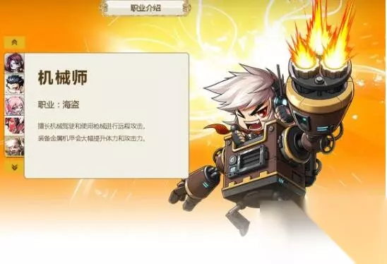 机械师 职业:海盗 机械师擅长机械驾驶和使用枪械进行远程攻击。装备金属机甲会大幅提升体力和攻击力。