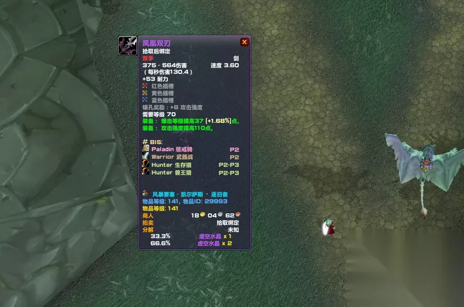 以凯尔萨斯掉落的凤凰双刃为例,白字伤害上下限之和为939,除以2就是469.5,再除以3.6的武器速度,得到的结果就是130.4的秒伤。如果佩戴晶铸饰品的话,则相当于提升了7/3.6=1.94的秒伤。 对于物理系直接来说,1点秒伤相当于14点攻强,也就是说在使用凤凰双刃的情况下,晶铸饰品可以给玩家带来1.94*14=27.16的攻强。 真的是猫德神器?