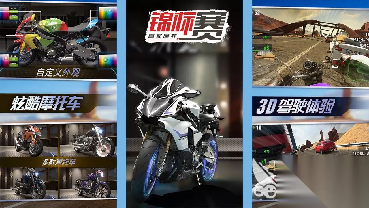 《小奥终极狂飙4》可以对跑车进行升级改装:更换纹路密集的轮胎,增大跑车摩擦力,以应对光滑的冰雪赛道;升级方向控制系统,提高方向盘稳定性,以应对急弯赛道;升级引擎,提升基础动力,可以在直道上大放异彩。要么当一个孤胆车神,凭技术征服赛场,要么组建车队,共闯拉力赛,共享荣耀奖杯,游戏会根据玩家的选择,给予相应的生涯奖励。 高速下载 普通下载 优先233乐园APP下载 9、《真实摩托锦标赛》