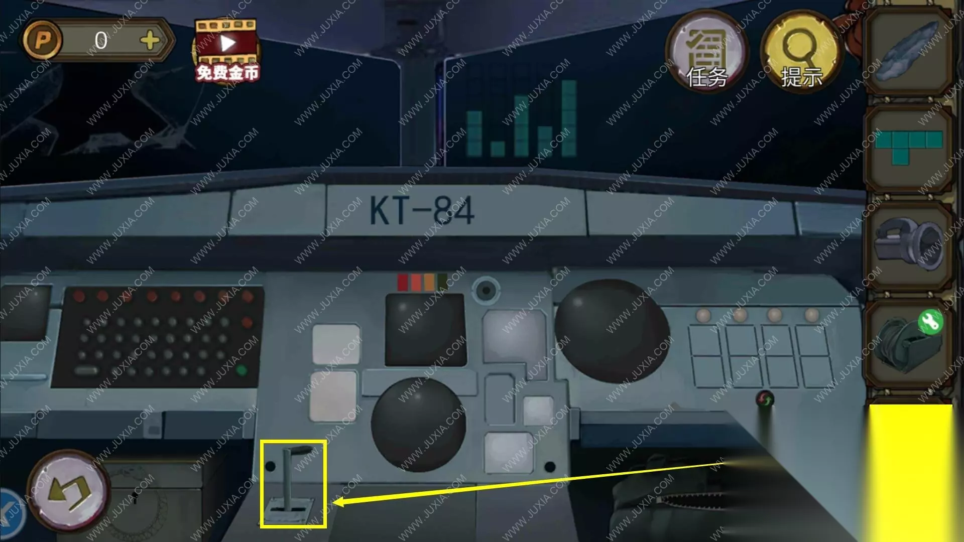 柜子密码:LEAD 床头柜子里拿到电击器头部,电击器手柄、电击器头部组合成电击器。 电击器把食人鱼电晕,拿到鱼缸里的项链,用玻璃刀拿到项链上的半块宝石。