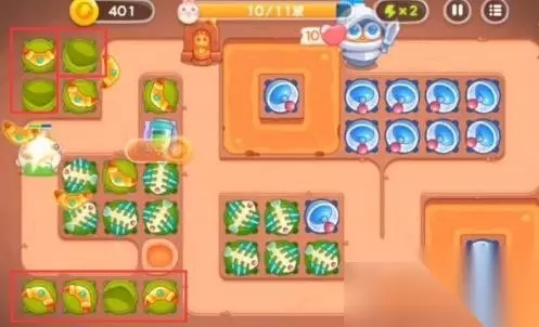 《保卫萝卜4》饿龙传说第40关全清通关速览 本关炮塔:飞镖、鱼骨塔、雷达塔 本关怪物:呆萌兔、蛋壳兔、恶魔兔、雷龙兔 1、开局时,建造一个飞镖和一个鱼刺。