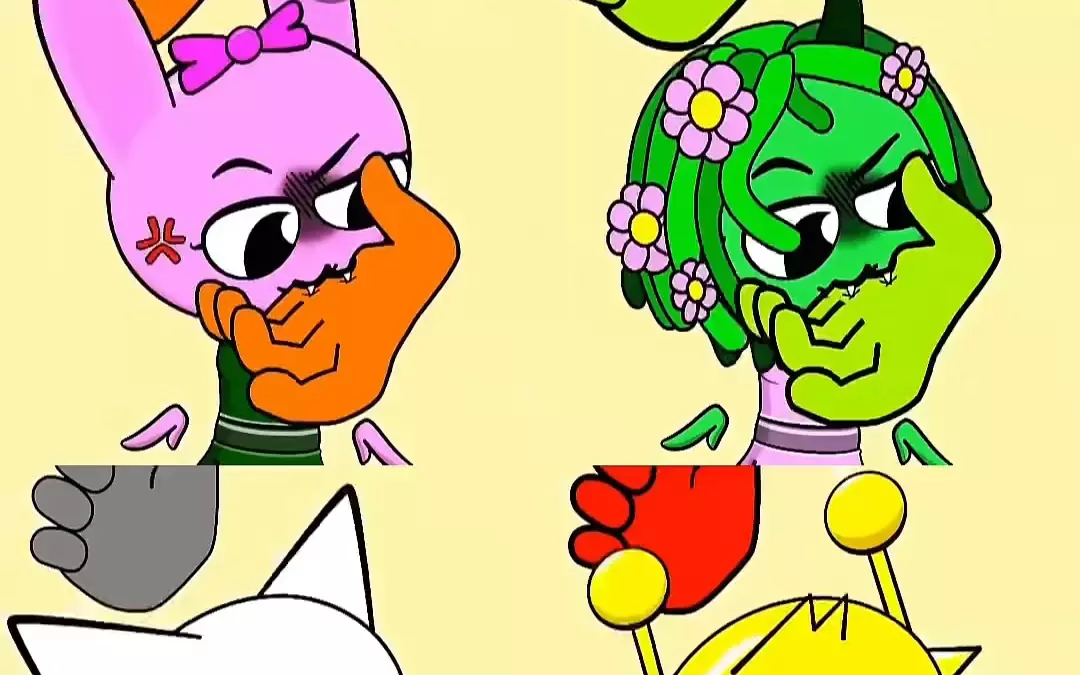 这是结合节奏盒子角色创作的趣味内容,模仿节奏大师的风格,呈现了节奏盒子里的卡通角色间搞怪的互动情节,充满趣味。