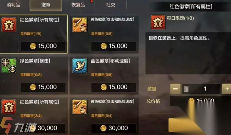建议平民玩家购买红色徽章,可以提升不错的属性值; 建议中氪玩家购买红色和黄色徽章,提升不错的攻击施法速度,增加输出; 建议土豪玩家购买各种颜色的徽章根据不同的装备进行搭配。