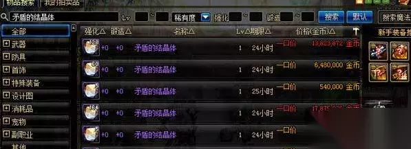 2、拍卖行购买 拍卖行中也会有玩家上架矛盾的结晶体,直接购买就可以了,购买的矛盾的结晶体会通过邮件发送给玩家;