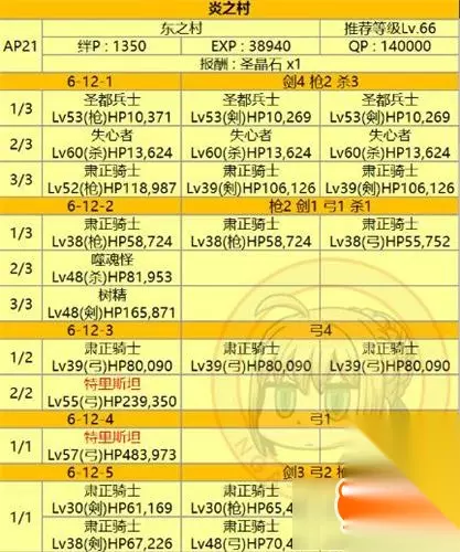 攻略难点: 1、主要敌人阶位是:枪、剑、 杀和弓,并问题是混阶,原因在于:例如剑克枪 弓克剑,所以你如果想用剑阶英灵去克制枪阶敌人,那可能被其他的弓阶敌人反克制。 2、boss崔斯坦拥有变更职业相性的能力,会成为除盾和剑阶外对其他阶位敌人都带特攻的状态,基本只有剑阶敌人能对其造成威胁,不过他自己是弓阶,理论上弓阶是克制剑阶,那么小崔属性带迷惑性。 3、boss血量都太高,特别是倒数三和第二站的数十万血崔斯坦,以及最后超高血的肃正骑士们!(关底的骑士也能比小崔更难消灭)
