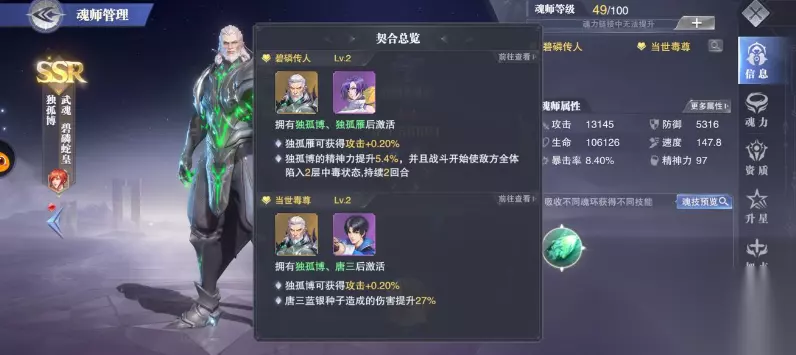 推图阵容与PVP阵容存在明显差异。短图推图推荐邪月、唐昊、宁荣荣、胡列娜、波赛西和奥斯卡的速攻组合,利用绛珠的拉条机制实现多轮输出。悬赏长图则适合暗三、唐晨、胡列娜、白沉香、绛珠和波赛西的持续输出阵容。斗魂场环境中,独孤博的碧鳞幻境配合古榕的反击体系能有效克制速攻流派,马红俊的熔岩地灼烧效果在持久战中优势明显。