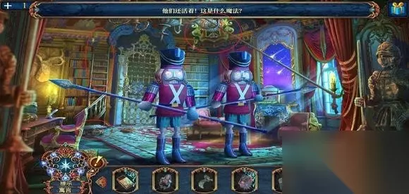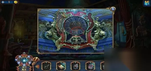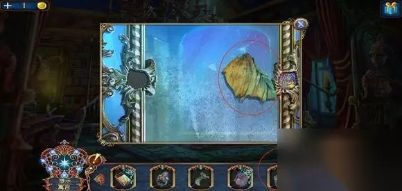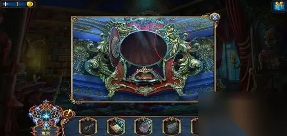 雕像下,用框饰打开,得到抹布。 点雕像,玩寻物小游戏,得到不完整的镜子装饰。