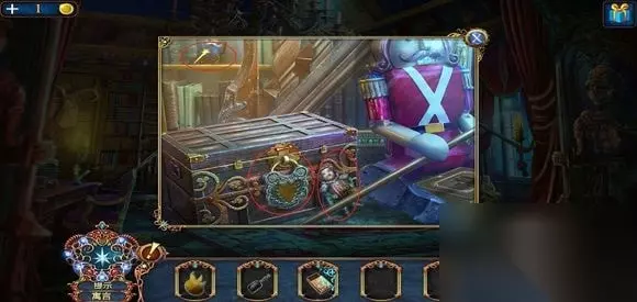用凤凰装饰打开,得到宝箱。 壁炉上,安装小人和宝箱,得到树叶状钥匙。