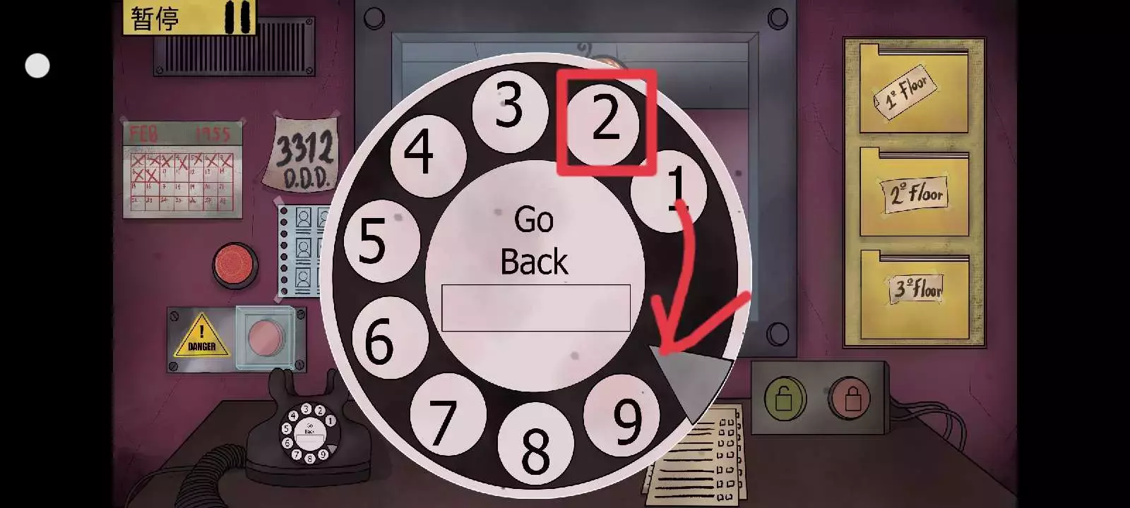 假设我们要拨打3312,就要像这几张图一样的,进行操作,按住每个数字向右转一下,就像图里的剪头一样