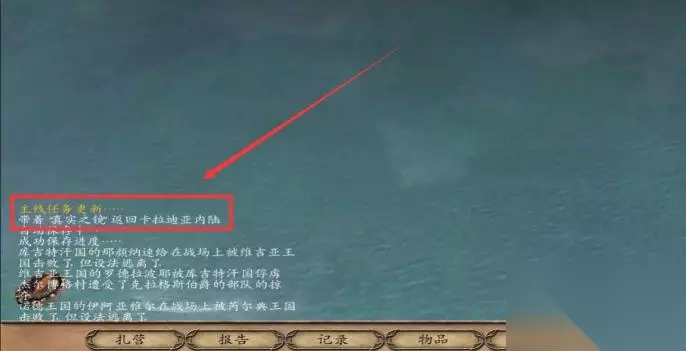 5、击杀10队暗黑骑士,准备找船出海,选择在海上迎战那巴尔或那巴尔袭击玩家营地,然后前往小岛,找到真实之镜,回到陆地上。如下两图: