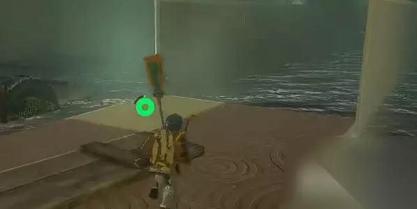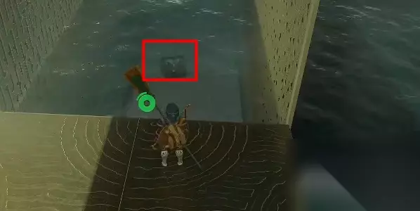 5、来到下图位置的水底可以看到一个宝箱,使用究极手将他移到平台上,打开后可以获得【左纳尼乌姆之强剑】。