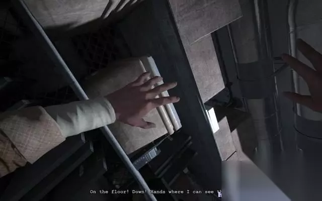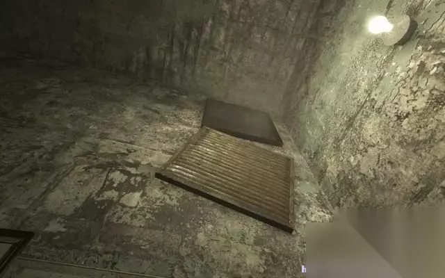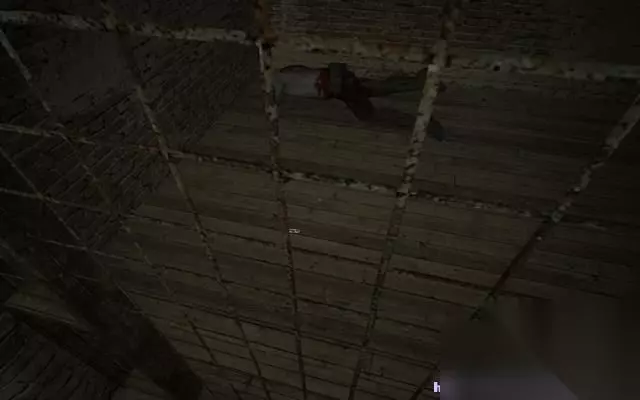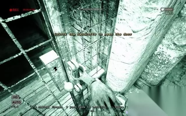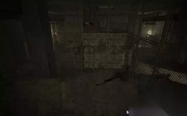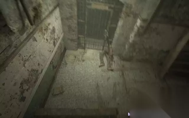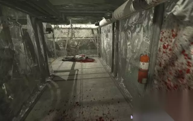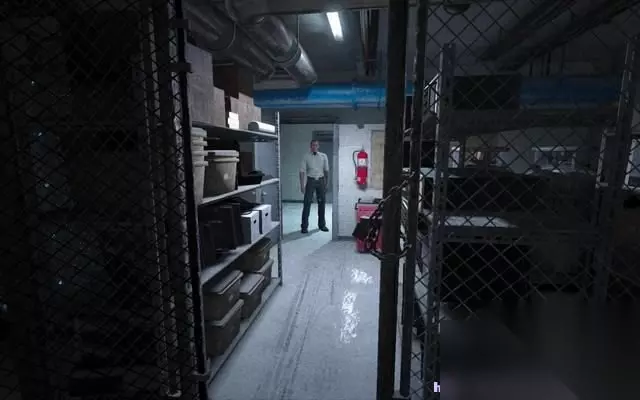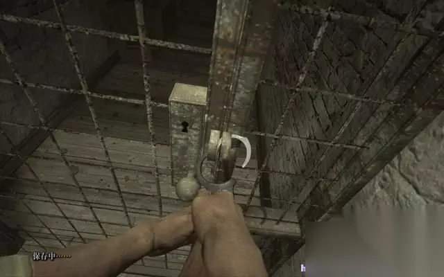 穿过洗手间,一到铁门赫然出现在眼前。 一个死去的人被拷在铁门上。 而手铐正好锁死了铁门,帕克必须找到钥匙。
