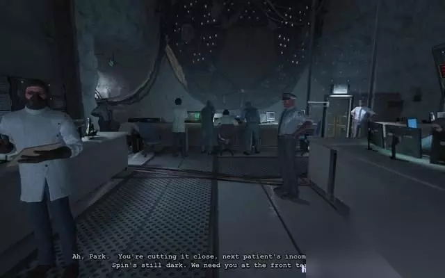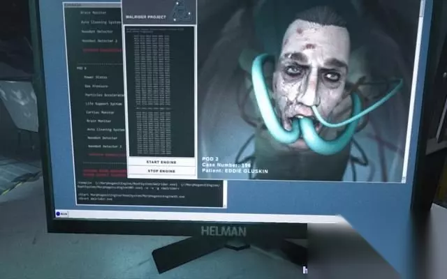 帕克跟着标示的方向前进。 一路上看到的都是恐怖的医学实验场景。