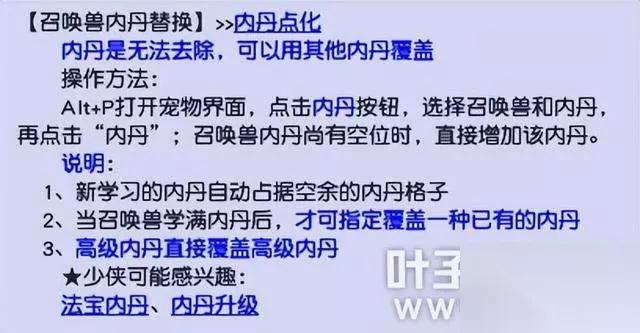此外,虽然内丹具有层数越高属性加成越好的特点,但坐骑成长也可以影响其具体属性。所以,只要高成长的坐骑足够多,在低成本进阶召唤兽后,其所受的影响其实并不大。 三、如何经济实惠地完成低成本进阶?