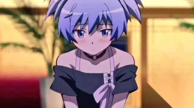 #04 潮田渚《暗杀教室》 浅蓝色的双马尾似的发型,体格比其他同学小。拥有着疑似女性的骨盆是一个很可爱的孩子。在街坊里的大妈大婶中很受欢迎。