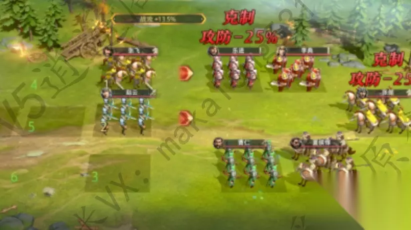 7.模拟战2: 武将兵种搭配:马超(磐石大盾)、于禁(磐石大盾)、黄月英(入门修士、赵云(烈火蛟索)、刘备(巨锤兵) 采用阵型:锥形阵