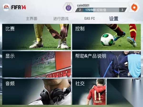 设置里面可以调整控制,显示以及音频还有比赛设置,社交和球队更新都需要联网或者登录。