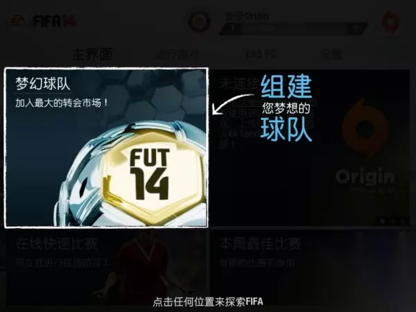 ORIGIN模式可以进行在线多人游戏,上传比赛录像,加入EASPORTS足球俱乐部。 在线快速比赛可以直接进行在线游戏,需要登录。