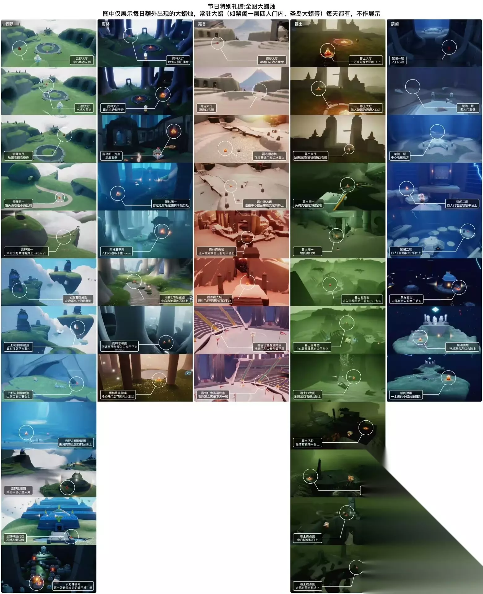 《光遇》游戏中每天的每日任务及大蜡烛的位置都不相同,玩家完成每日任务及收集大蜡烛都可以得到丰厚的兑换奖励,奖励可以用于兑换各种动作及道具,不过很多小伙伴不知道每日任务怎么做,又懒得自己去找大蜡烛的位置,我们汇总了每日任务的完成攻略以及蜡烛位置,一起来看看吧!