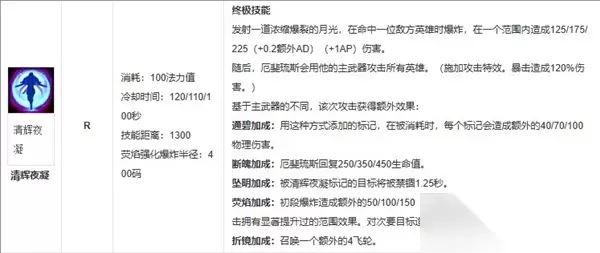 4、E技能:月光挥舞 厄斐琉斯的E技能为他提供了一种强大的机动性。当释放E技能时,他会瞬间挥舞月光武器,向前移动一段距离并对路径上的敌人造成伤害。该技能不仅具有进攻性,还能让他迅速接近敌人或脱离战斗,为自己争取更多的机会。