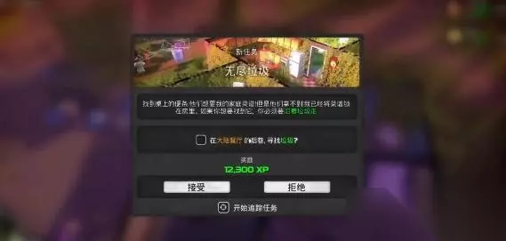 2.首先去往第一个地点在大陆餐厅的后巷,会看到一群怪玩家把他们都干掉,然后在垃圾桶里找到信息【在大陆餐厅北面的池塘,搜寻更多的垃圾】;