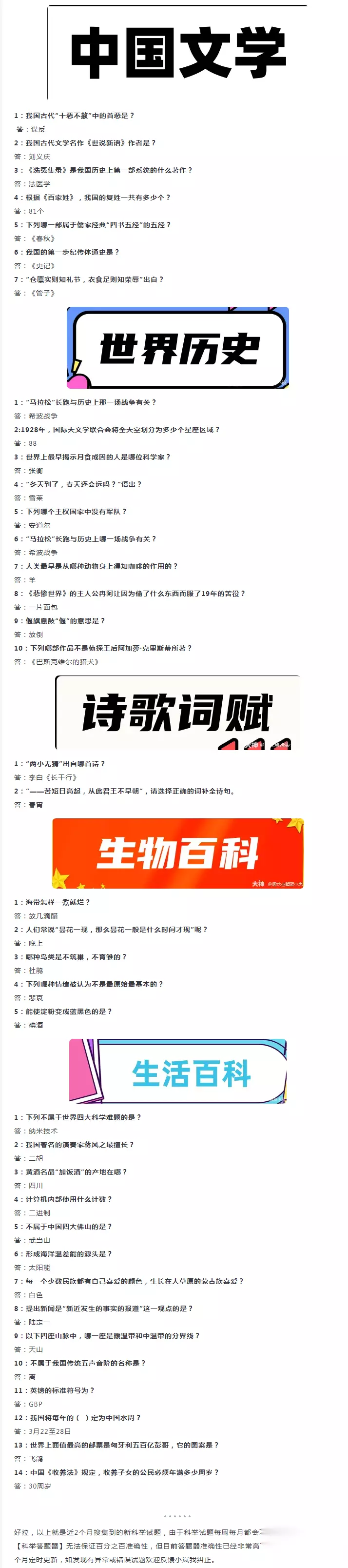 最新搜集到的科举试题合集来了,速速来接收吧