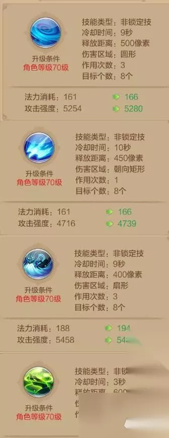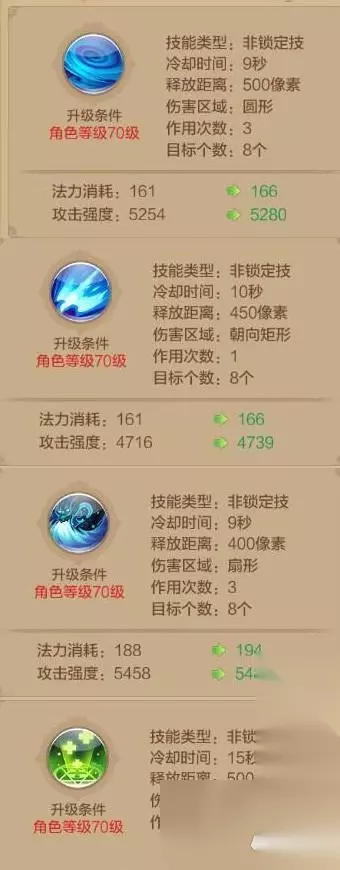 2、天泉术、灵凤术、龙吟术、回春术。三个群体伤害可以对小怪进行范围的AOE伤害,提高击杀小怪的速度,同时群体治疗可以保证所有队友和宠物在一段时间就会有血量的回补,延长了宠物的寿命并提高了队友的生存空间,强力推荐。