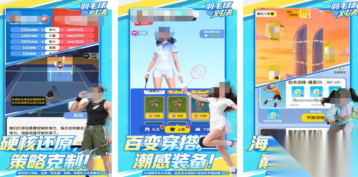 《超能羽毛球》是集科幻元素和超级能力于一身的羽毛球游戏。羽毛球不再受到常规物理法则的约束,玩家可以操纵带有特殊能量的球拍打出曲线球、瞬移球和爆炸球等。角色设计具有未来感,机甲战士、异能少年、未来警察、黑客等众多类型的英雄纷纷登场,他们施展的各种技能特效也都十分炫酷。除了单打和双打之外,游戏还增添了生存模式、夺旗模式等新的趣味性玩法。 高速下载 普通下载 5、《决战羽毛球》