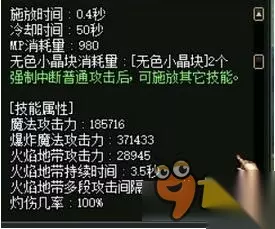 可以看出差距非常之大,大火的伤害也是非常爆炸的。但是,由于啊呀呀的伤害与它平分秋色,并且cd比它少了10秒之多,所以在最终sp紧缺的时候,我们还是优先满啊呀呀,然后将剩余的点全部分配给大火,此时可以将它点到9级,我们可以来看看9级的数据,并没有损失过多的伤害,这就是两者相较择优后的结果。