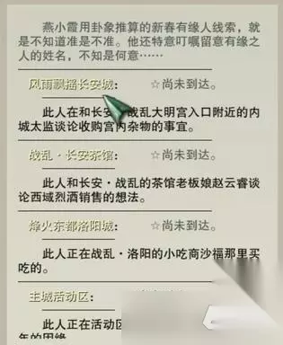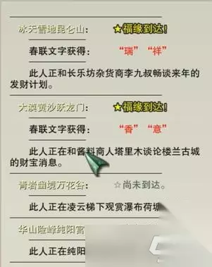 【剑网3丝路风语攻略】 剑网3喜觅春联四海庆NPC 1、长安城 【长安·战乱】地图【华清宫】,NPC【金玉腾】在副本门口 2、战乱·长安茶馆 【长安·战乱-茶馆】,NPC【龙迎蛇】在茶馆老板娘赵云睿的旁边。 3、洛阳城 【洛阳·战乱】地图,NPC【辞瑜迎】在地图中央【南天围场】上方小吃商的旁边。 4、风雨镇 【洛阳·战乱】地图,NPC【岁风春】在【风雨镇】左侧车夫点 5、主城活动区 建议去扬州,在余半仙旁边找到NPC【旧变新】