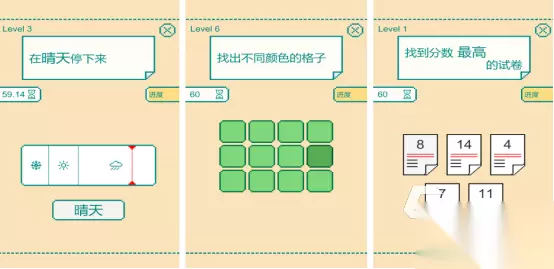 既锻炼了大家的反应能力,又锻炼了记忆力,开局后有不同随机给出的题目,比如在一系列的答题试卷中,让你寻找到分数最高的试卷,看似特别简单。但实际挑战时却有一定的难度,还有的关卡是屏幕中,有很多颜色相似的方块,但却要你仔细观察寻找到不同颜色的格子。 高速下载 普通下载 优先233乐园APP下载 训练脑子灵活的游戏是很多家长梦寐以求的,因为孩子们从小就要逐渐锻炼自己的大脑,让大脑的转动速度更快,不输在起跑线上。其实可锻炼大脑的游戏类型特别多,小编只找到了这几款,有的包含了数字,有的却包含了各种脑洞大开的难题。