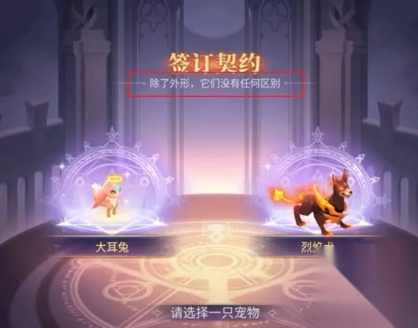 在选择新手宠物的时候,选择中意的外观就好,宠物的技能和资质都是一样的,而且后续还有更多稀有萌宠等你去发现哦~