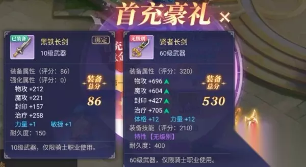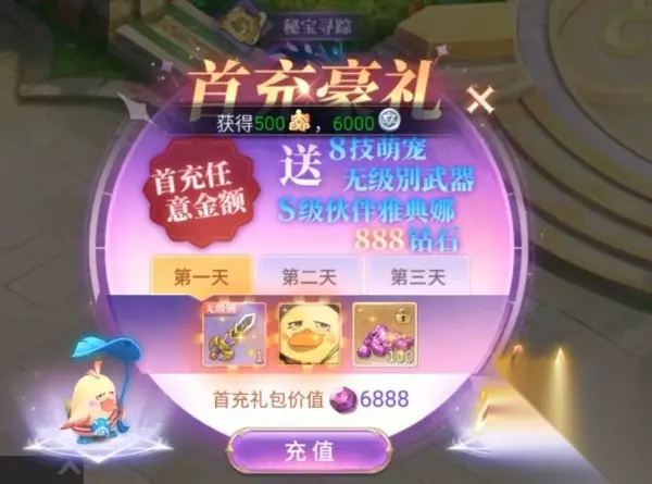 游戏有众多福利礼包,如果手头不怎么阔绰的玩家建议选择性价比最高的首充豪礼,至少能用到60级,想长期玩下去的话,是比较推荐的。当然,如果你是壕系玩家,也可以选择“我全都要”。
