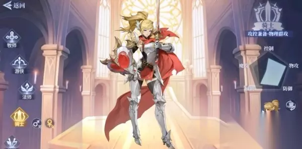 除了法师,幻想世界少不了的另一个职业就是骑士,游戏中的定位是物理输出和肉盾。在物攻和防御上有着不俗的成绩,而且在控制和辅助上的能力也不弱。属于攻控兼备的职业。