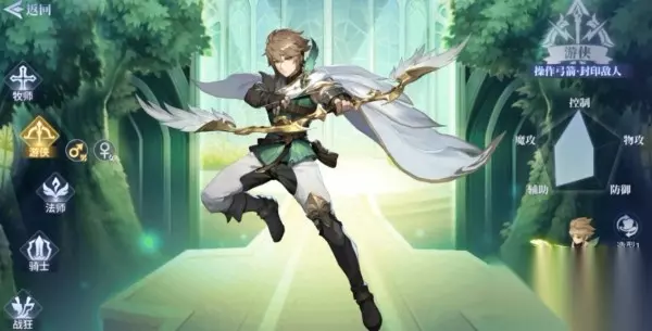 然后是游侠,定位是辅助和控制。虽然除了辅助控制外的能力平平,但在队伍中扮演着不可或缺的角色。能够操纵弓箭封印敌人,被他抓到可就别想逃走了。
